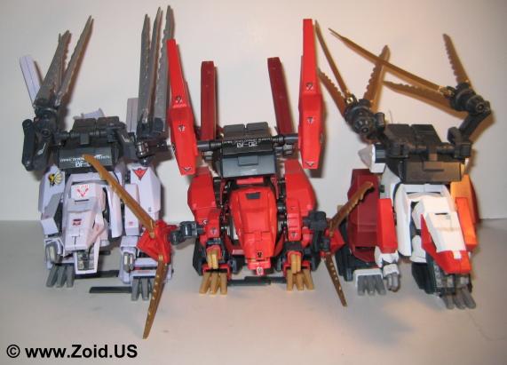 The Berserk Fury is one of the more complex Zoids builds. Using two triple A batteries for it's motion, Berserk Fury actually has a switch for the operator to select between two distinct modes of operation. The first mode makes the Zoid walk forward with its arms swinging, and tail sweeping. The second mode is just awesome. In this mode the Berserk Fury stands totally still and opens the intake vents on the tail while deploying the Charged Particle Cannon. Check the build file located above to get a general idea of building this piece. The eyes are exceptionally hard to place and can break if not handled properly. The tail vents also must be perfectly aligned and trimmed flawlessly to operate correctly. On the Sturm Tyrann it is possible for the X-breakers to bend and eventually snap as the plastic is not heavy enough to support the weight of the claws. This problem can be solved by carefully positioning the Zoid to take the weight off of the claw units when displaying it for extended periods of time. I consider the build to be extremely fun, and I am currently up to about 6 pieces (including one custom the Black Tyrann). A variety of pieces and variable sizes of those pieces make this build very time consuming, yet totally satisfying when complete. The actual Zoid is a sizeable piece when finished and the Buster Claws make for almost endless display possibilities. A highly desirable kit, I recommend picking up at least one of these history rich beauties.