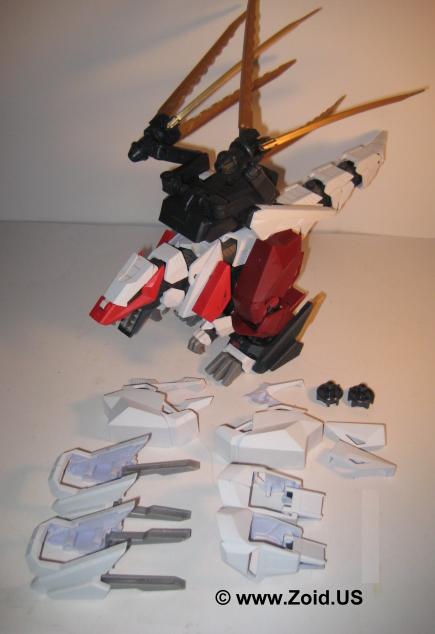 In 2003 we received the Yuji Kaida limited Sturm Tyrann. The sticker sheet reflected it's Neo-Zenebas origin and the Storm Unit was standard. This model gave the builder a variety of choices when assembling it right down to more angled face molding. Considered to be one of the biggest bad ass's around Sturm Tyrann is a big boxed unit that is harder to find, and when found it commands a high price at this point approaching $300.00 US.