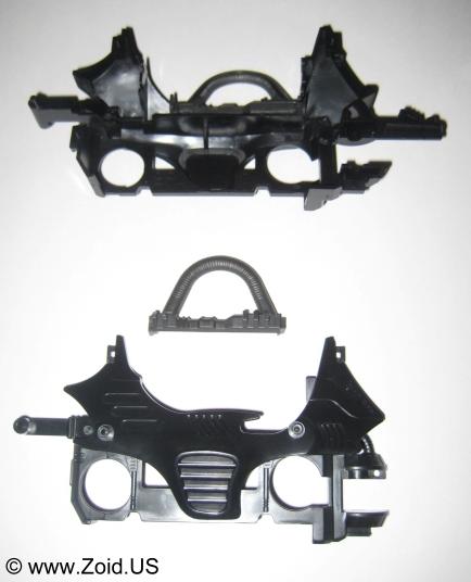 The spine axle is inserted to the right body half, the motor and ring neck base are then placed.