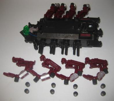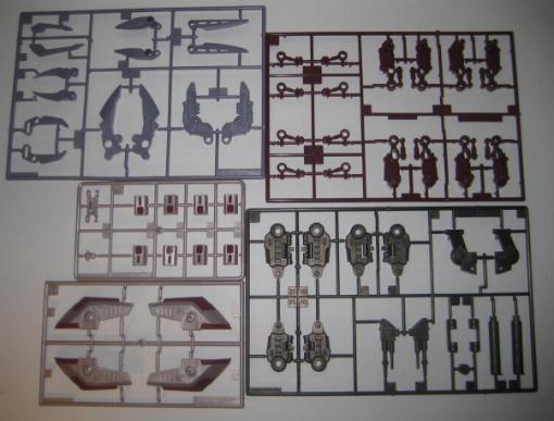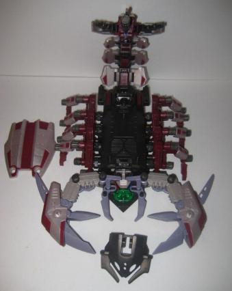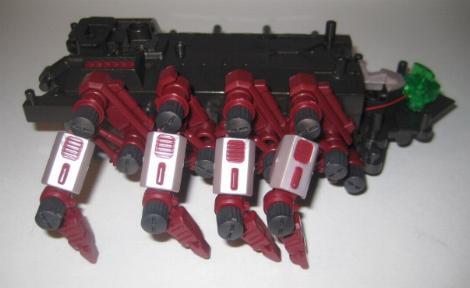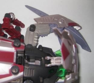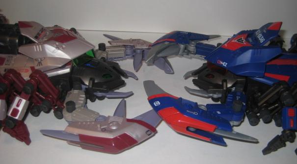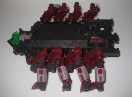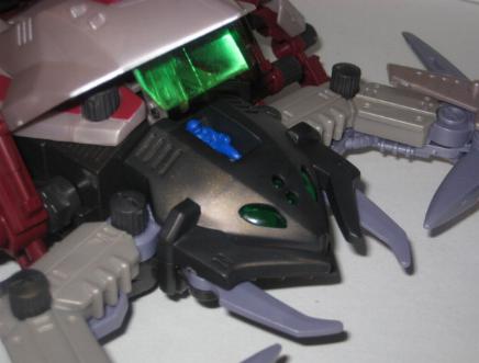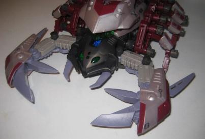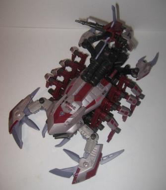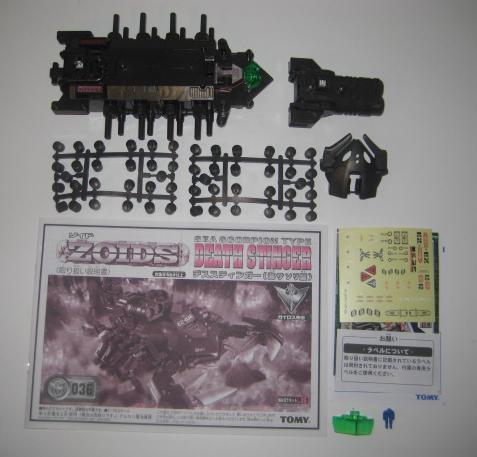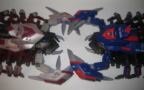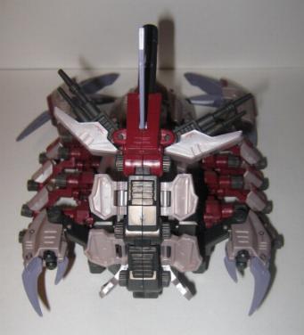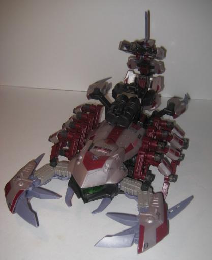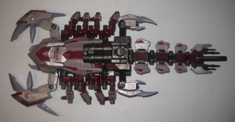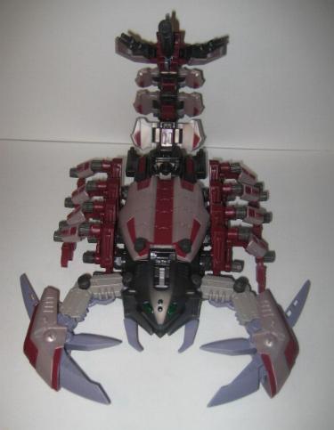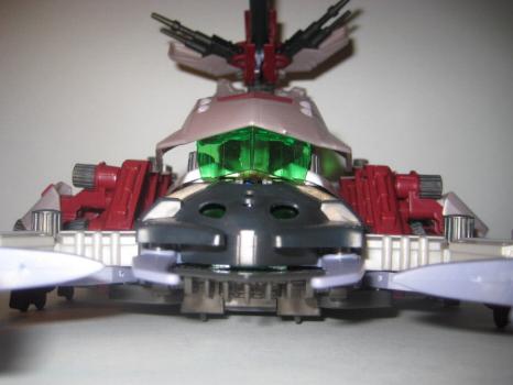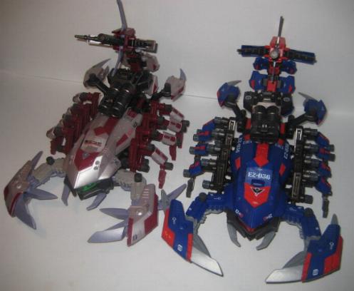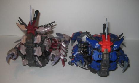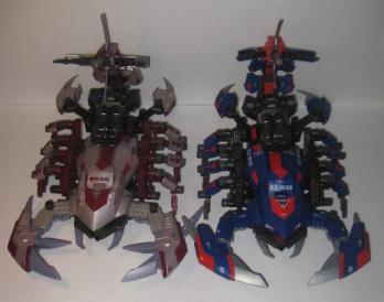 The sticker set includes some custom stickers that, I think, really add to the overall appeal of the unit. The custom stickers include a pair of Iron Birds (complete with descending arrows), a white and black Empire logo, and a head cover piece that adorns the top portion of the cockpit. I actually prefer this to the NJR release as the colors are more realistic. The unit makes a very nice addition to any collection and also marks the end of the Yuji Kaida line. The Death Stinger is a large unit that has both a complex look and feel to it. Below are some final pictures, as well as a comparison to the NJR version.