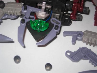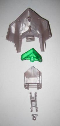 The head cover is then assembled. Three pieces form a lever on the underside that enables the cover to rise and fall allowing access to the cockpit. The lens is also placed during this step.