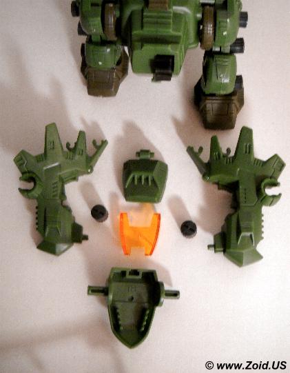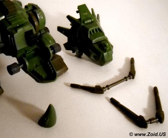 Next the left foreleg is constructed. The front leg consists of four pieces and is secured via 3 caps.