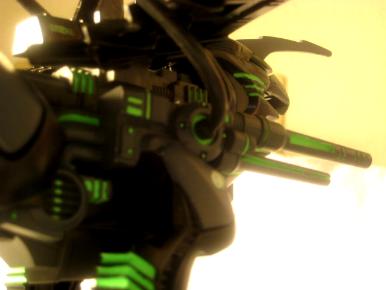 Being a vintage Dark Zoid I wanted to make sure and use the available Grade Up port. I also wanted massive firepower, so I decided on a large cannon to fill the port and incorporate hoses into the existing dual shoulder mounted cannons forming somewhat of a super triple cannon system where the hoses from each shoulder gun (if necessary) would feed the large back mounted cannon. Adding to the realism, I wanted to incorporate a heat shield that would assist in dispersing the massive heat generated by rapid fire.