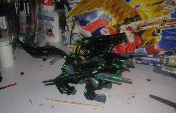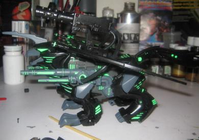 Dark Cougar took approx. 35-40 hours to from start to finish. Although not "storyline accurate," I find the piece to be most pleasing. I truly enjoy doing Dark Zoids, and it's fun to look back a few years ago at my first custom which was also a Dark Zoid. After paint, the cannon was attached and hoses were ran. Stickers were applied and the unit was finished.