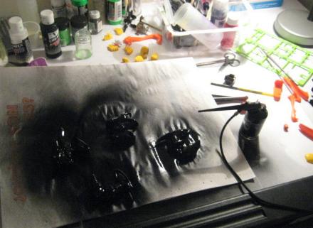 After assembly, it was time to spot paint some minor imperfections, and touch up some areas that need more paint to make them all uniform. Back to the workbench.