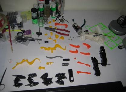 I recently consolidated all of my "Zoids stuff" to fit in one corner of a room. This space was much needed as I have a semi walking 10 month old and an interested (almost) 3 year old investigating all projects. Now, affectionately know as "The Lab" I finally have a permanent, private, place to work on custom pieces. What better inauguration than a 20 year old Gul Tiger? My absorption in Dead Tiger was absolute, which is precisely the intent of any custom worth devoting time to.