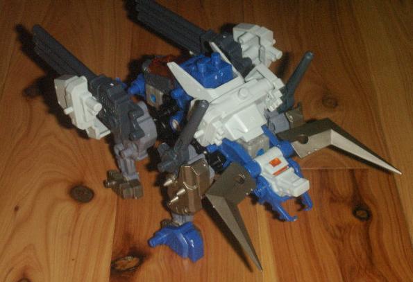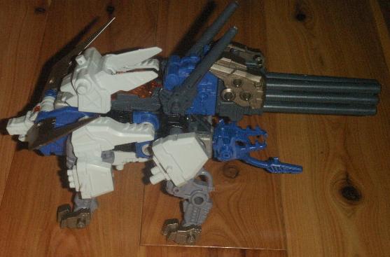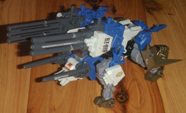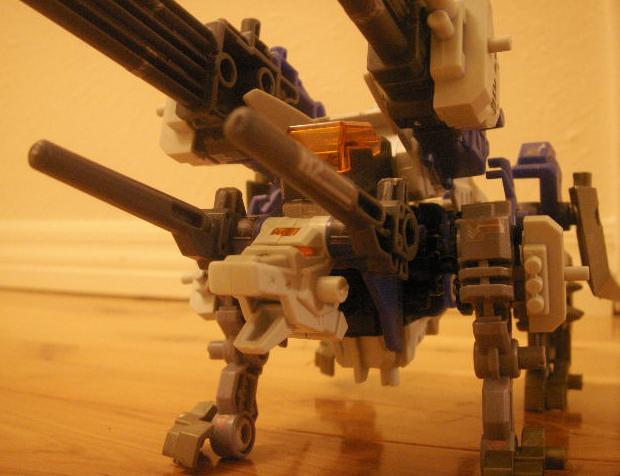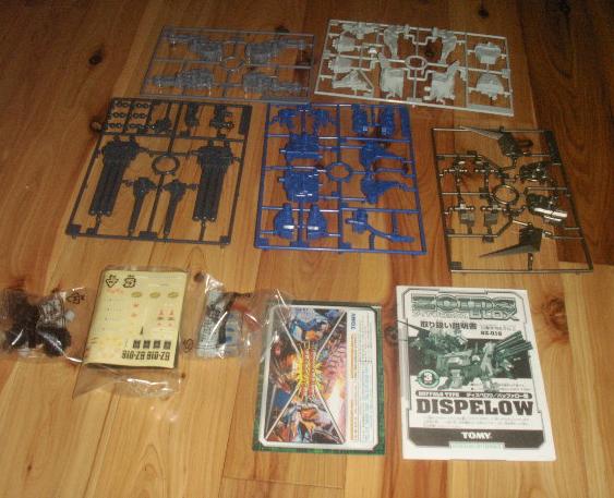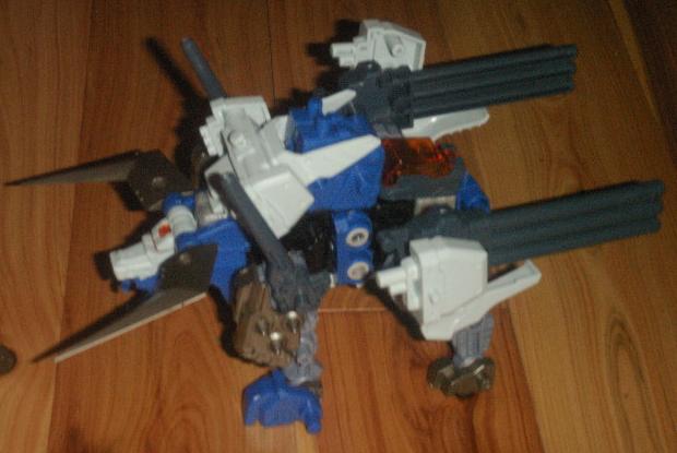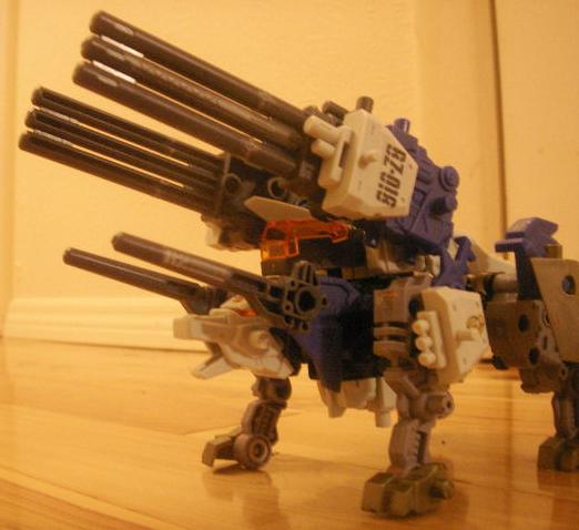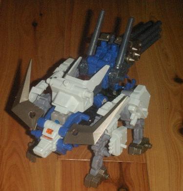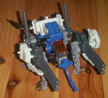 Dispelow BZ-018. I truly believe this is a very "looked over" Blox. Dispelow has three very distinct forms, which makes him a very versatile Zoid right from the start. Each mode is covered in the instruction booklet, and requires a little more than just changing a few parts here and there. I cannot read Kanji, but assume the three modes are akin to the three forms of Liger Zero, one for speed, the other for heavy weaponry, and a mix of both for its standard mode. Below you will find all three forms, for my own personal display I went with the heavy weaponry AKA "Guns-A-Blazin" mode. The stickers are an absolute joy to put on, and Dispelow features a few unique stickers that I have not seen on any other Blox. (Namely the elongated cannon stickers.) Almost the entire sticker sheet is used, which is refreshing.