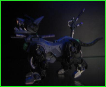 This was my first attempt at a custom Zoid, that was built years ago. There were a lot of things that I did not know back then that are reflected in this build, for example the suppressed glowing ability, and the color combinations. Looking back, I probably would not have used as much grey as I did. This build was inspired by my love of the Dark Zoids (even back then), and the fact that I have always owned American Pit Bull Terriers as pets. The build took a few days, and you can view some of the process of creating the piece here.