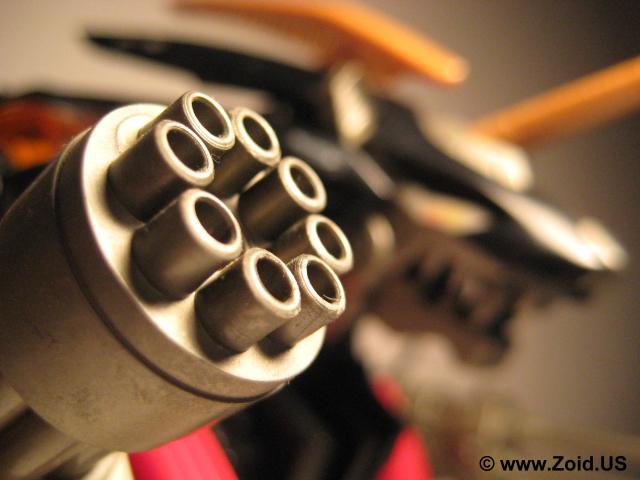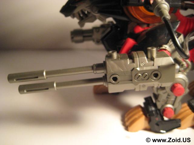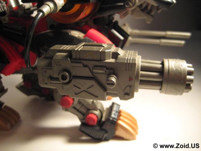 The Energy Liger also features a wide array of weapons. The first main piece of weaponry is a two barrel charger beam cannon, this is partnered with an unmistakable eight barrel charger gatling gun.  Both of these weapons are powered by the energy charger, and are capable of ungodly amounts of damage. A small pair of wings also adorn Energy Liger, also powered by the energy charger, these wings make the Zoid capable of limited flight. The wings can also be used offensively as a pair of laser blades capable of cutting through an enemy as if it were a tin can. In addition to these three unique weapons the Energy Liger also has an AZ X Blade, a Gungir Horn that it can use as a lance, and each of the claws xan also serve as weapons.