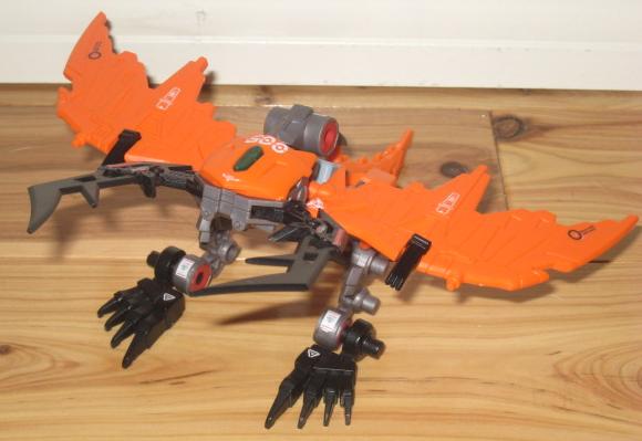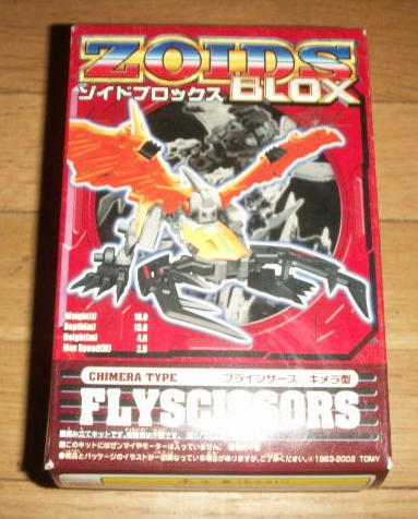 This is the Fly Scissors Blox Zoid. I am a huge fan of this guy. He does differ from the box in that the actual unit is orange and black with the omission of the yellow. The colors gives this Zoid a distinct Halloween feel. It is surprisingly large for a Blox. The pinchers open and close when one is pulled via gear like interlocking pieces. A fun build, fun to sticker, this is a must add to your collection.