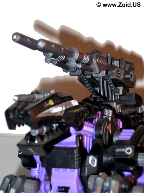 Along with the Charged Particle Cannon, Geno Saurer featured Hyper Strike Claws not unlike that of Liger Zero's. Rounding it out is one short range laser gun as well as one long range laser rifle. As for equipment the Geno Saurer has a pair of anchors similar to Berserk Fury that anchor the unit into the ground in order to provide stabilization when firing the Charged Particle Cannon. It would also gain a large advantage by the incorporation of the Organoid system which would maximize it's intelligence allowing the unit to operate without a pilot, while at the same time increasing it's abilities especially making the Geno Saurer fast and agile for it's size and heavy armor. In the Zoids Anime as well as video games, the Geno Saurer is depicted as having another ability that is not featured on the model kit. In true Chogokin style the Geno Saurer is able to fire it's electrified hands on long and retractable cables. This would allow the Geno Saurer to "reach out and touch" opponents effectively pulling them into the line of fire, or using the electricity generated to wreak havoc upon the enemies computer systems. The Geno Sauerer was entered into mass production by the Empire would prove to be one of the most formidable Zoids of it's time.