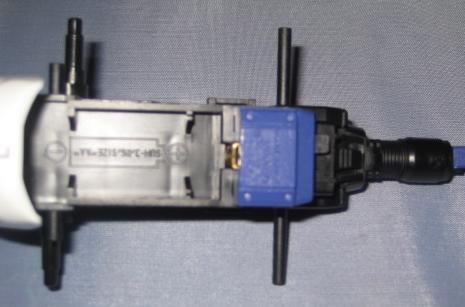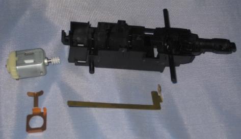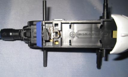 The bottom portion of the battery compartment is then fitted with two metal contacts, a cover, and a plastic lever to form the actual on/off switch.