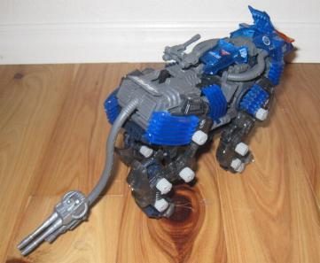 Being the very first Zoid to make use of an energy shield, Shield Liger derives it's name from this ability. The shield forms from the mane of the Liger and protects the front half of the Zoid in battle. This was a paramount advancement in technology and, at the time, and made the Zoid almost unmatchable. The energy shield or "E-Shield" would continue to be utilized on Zoids like Gojulas Giga. The energy shieldcan also be used to protect the Liger while it runs at full speed effectively turning the Liger into a battering ram. The energy shield was very effective until it crossed paths with a Death Saurer which rendered it useless. Shield Liger was one of the main character Zoids appearing in the Zoids Anime Chaotic Century. The Shield Liger was discovered in a desert and restored by Van's (the central protagonist) Organoid named Zeke. The Shield Liger fought many battles through approx. half of the series and was eventually destroyed by a Genosaurer. The Shield Liger would be resurrected later on as the variation known as "Blade Liger".