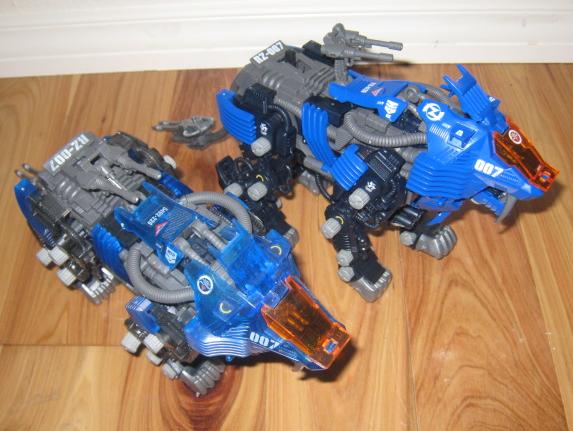 The NJR and Hasbro release of the Shield Liger are the most abundant of all releases. This version saw a deeper blue color as well as an orange canopy. It is with this release that TOMY scaled down the battery compartment to fit only one double A battery instead of the usual two. The battery lid was also changed from a clip closure to a screw down closure. Shortly after this release Hasbro released a Holo Tech version of the Shield Liger. The body was a transparent blue and grey. This unit is seen in Canada, and is harder to locate. About a year ago a case of Holo Tech Shield ligers were discovered in the remnants of an old toy store. The founder has been supplying eBay with a steady stream of them since, and they seem to be getting sparse. Expect $40.00-$80.00 to land one.