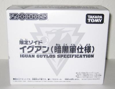 Iguan is a Iguanodon type Zoid, based on the ornithopod genus of dinosaurs. Featuring large thumb spikes for defense, Iguanodon translates to mean "Iguana Tooth". Iguan was originally created by the Zenebas Empire and was the standard infantry unit used. Like other early Zoids, Iguan was designed to be used alongside other Zoids like Malder and Molga. Iguan was unique in it's two legged or bi pedal design which allowed greater range of movement when compared to it's fellow four legged (or wheeled) counterparts. Iguan was reinstated years later by the Guylos Empire. Iguan made a good choice for many reasons including its ability to be mass produced easier than other units, its freedom of movement, and it's natural choice for a standard infantry unit. We can only assume that the 2008 Wonderfest release represents the true form of the Guylos resurrection of Iguan in which they used Deochalcum to considerably boost both it's attack and defense capabilities.