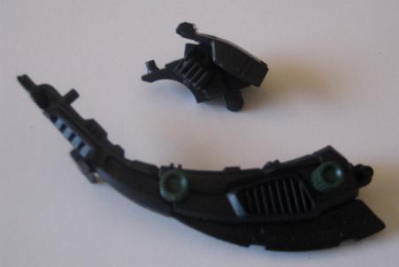 The last step attaches the dual tail cannons, upper tail mounted guns and "ear" cannons.