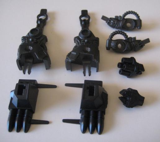 Next both feet and arms are constructed. Each foot has two pieces that snap together. Each arm has an extension that simply pops into place.