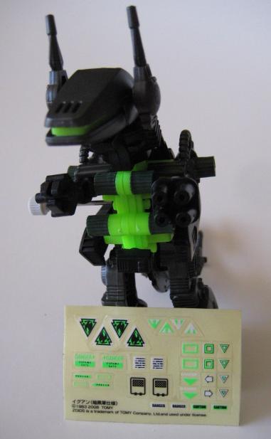 The unit is then ready for display. I truly believe Iguan looks a lot better in Dark Zoid colors, but then again I am very loyal to the black and green. I would have had better choices for a Dark release, but it makes a nice addition to the family, and is a solid unit that holds it's own. A staple of any basic collection, like it or not, Iguan has become a classic.