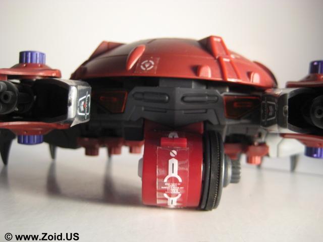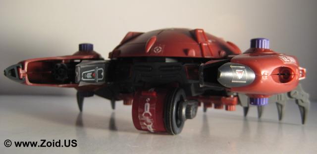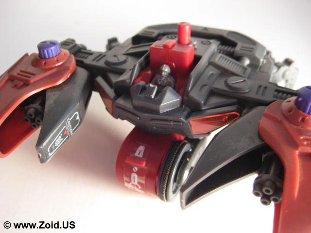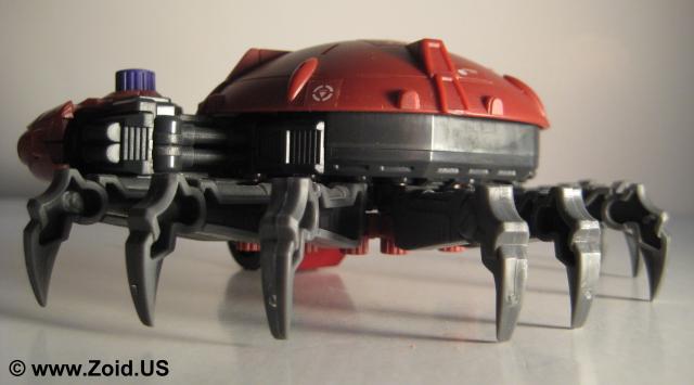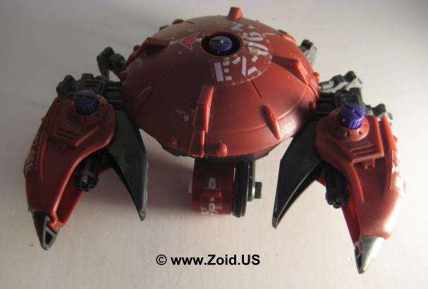 Adding to the lure of the unit is an impressive array of weaponry. Killer Dome sports a total of eight pulse laser cannons on top of the dome that are able to fire in any direction, giving the unit the benefit of having 360 degree firing range. It's massive claws are also very formidable and able to tear into thick armor with ease. Inside each claw is a four barrel beam cannon. Perhaps the most interesting feature is Killer Dome's ability to combine with Dark Spiner to form the Fuzor's version dubbed "Killer Spiner". When in this combined mode, Killer Dome becomes a more than formidable machine that strikes fear into the heart of any approaching Zoid.