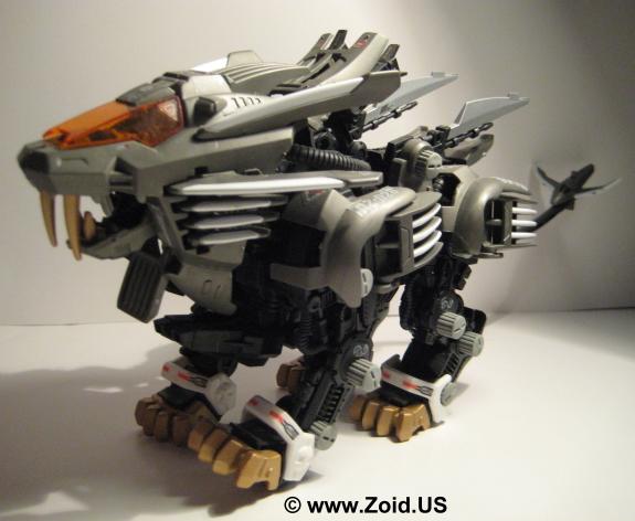 Blade Liger is quicker and more maneuverable than it's previous incarnation. Modifications are included on everything from the weapons systems to the Energy Shield. The Energy Shield is now enhanced by the addition of four inter-cooling units that are vented through the fins of the shoulder armor allowing for quicker heat dispersion. Due to the merging with the Organoid, the Blade Liger now possesses an Organoid System allowing the Zoid to operate in "AI" mode, without a pilot. (This fact probably also accounts for the lack of pilot in many of the model's releases.) The Organoid system also grants the Blade Liger limited and highly powerful "power boosts".