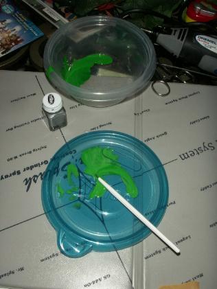 I them began masking and painting. I mixed up a custom green, and used a gloss black and a primer grey