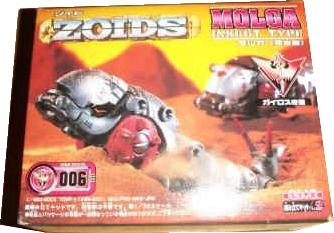 In 1999, the NJR release was next, and is the most readily available version. This was followed by the NAR release. Both Titled "Molga" these versions were identical, save for the box art. Pictured below are the NJR and NAR box art. This was the sixth Zoid to be released in the NJR line and is designated as EZ-006.