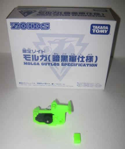 Molga was also released in a clear "holotech" or "crystal" version. This version was available with Z-points in Japan and was also released as a packaged special in Australia. Below are the Australia and Japanese release boxes. The pilot figure that accompanied both version was finished in blue.