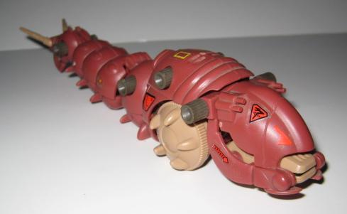 Molga was first released in 1983, has seen many versions. The OJR release titled "Molga" was first followed by the OER and Robostrux version dubbed "Kreep". This classic version of Molga was brick red and tan. It featured a gold colored pilot.