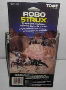 It is known that there were OER releases packed and sold in Robostrux boxes. This is an OER Slither Zoid repackaged in a Robostrux box. This is a rarely seen box. Produced in 1986 in Singapore the front features the slogan: "Monstrous Machines with the power to move!" and on the reverse reads: "The war between the Blue Guardians & Red Mutants rages on. Who will win the next deadly encounter?!!" The enclosed label sheet has a foil like quality, and features Empire Logo's as well as two separate "eye decals".
