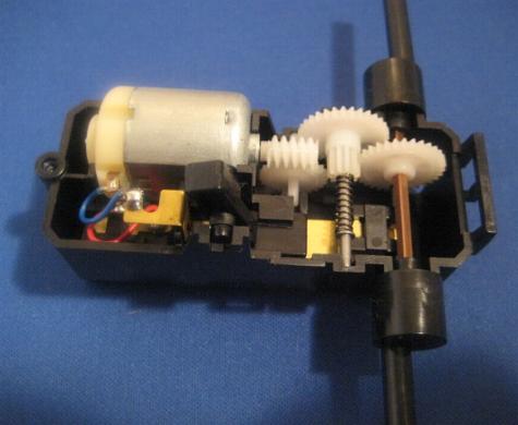 Inside is the classic Grade Up motor, three gears, and the battery contact wires.