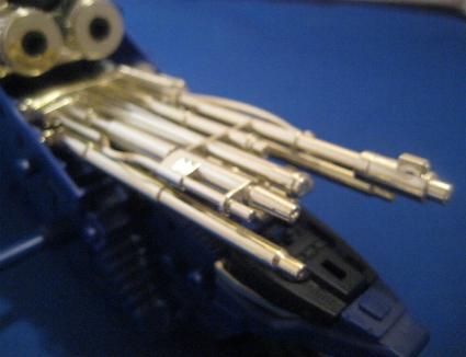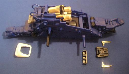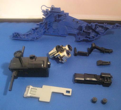 The first step is assembling the gear port which makes contact with main gear above allowing all three cannons to spin.