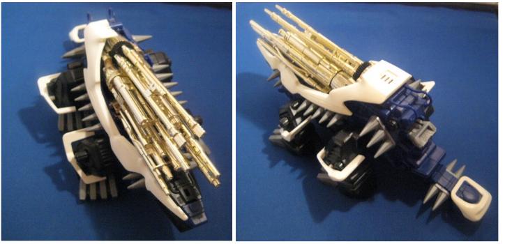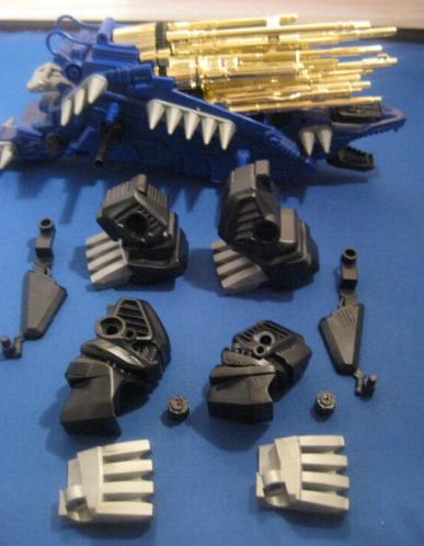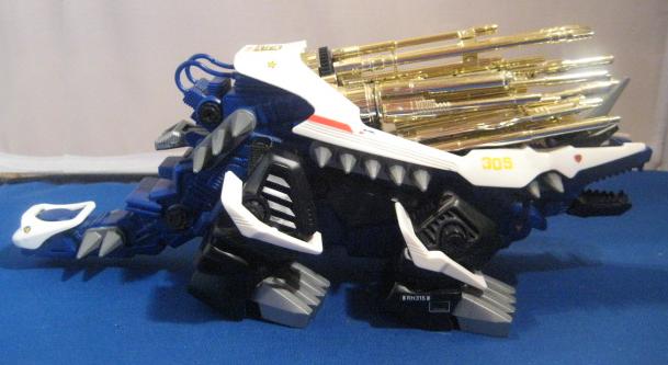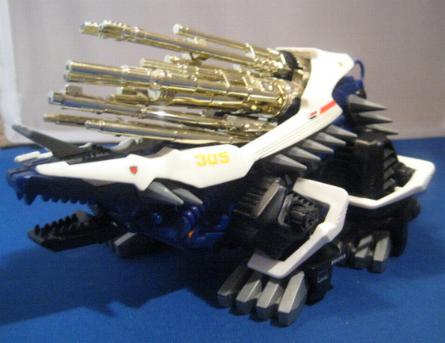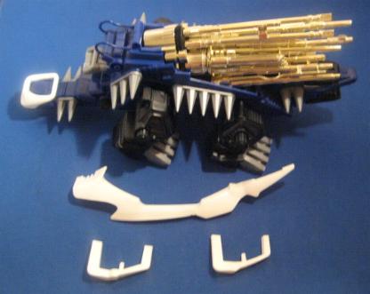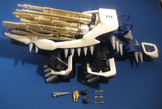 Gun Bluster is the King of Bling rivaled only by the Grade Up Zoids. Its a classic design that belongs in any collection. When powered on the unit moves forward at a dramatically real (slow) pace with its jaws chomping and the gatling guns spinning. The OJR is by far the best version. Getting harder to come by now it is worth actively seeking. Not only does Gun Bluster sport more gold than a pimp in 1985, it does so with a very imperious style that makes it unforgettable from the first time one is lucky enough to lay eyes upon it.