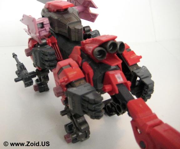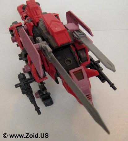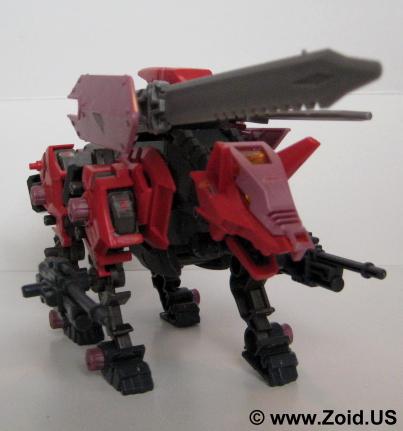 The Sword Wolf is equipped with strike claws, bite fangs, electron hyper cannons, and the infamous dual blades. Adorning the back of the Sword Wolf, these blades are known as "Hack Blades" and are produced from a very rare form of metal found on Planet Zi known as "Metal Zi". These blades are large, functional units that span a good part of the length of the Zoid resulting in a minor loss of both speed and agility. The Sword Wolf also mounts a 3 nozzle Ion Booster which gives the unit massive acceleration while allowing the unit to jump long distances almost making the Zoid capable of "short flight". Sword Wolf is not heavily armored, instead relying on it's speed to evade most attacks.